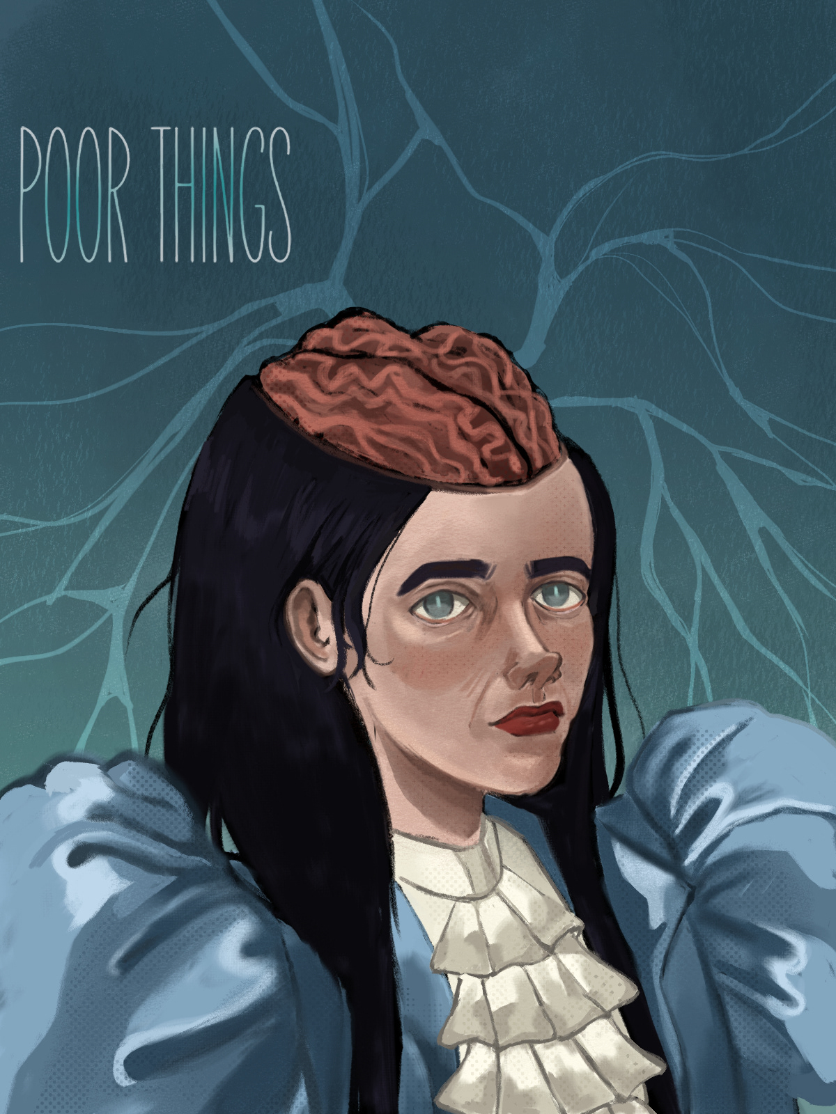 Illustration based on the film Poor Things. Style, color, line, and texture was used to emulate the mood of the film.