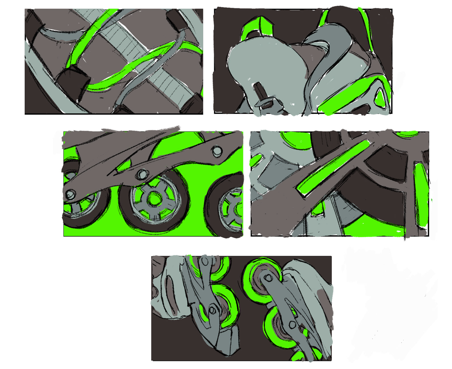 Final Illustration frames to create a concept for a motion media storyboard for a rollerblade brand. Using deconstruction and bold graphics, the final storyboard captures the essence of the rollerblade brand!